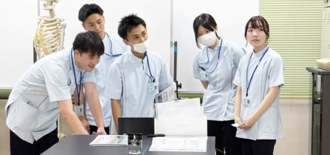 1・2年次では『学びの技法Ⅰ・Ⅱ』という科目において、国家試験の問題を利用し、主体的な学習とグループ学習により、自ら学ぶ姿勢を身につけ考えられる力やコミュニケーション力を培います。3年次では『基礎・専門理学療法学演習』という科目で学校と臨床実習で学んだ基礎知識と専門知識を繋げて国家試験に備えるといったカリキュラムになっています。