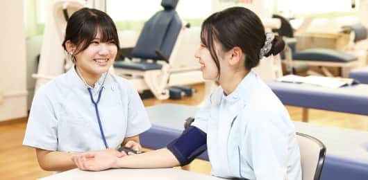 医学の基礎と理学療法の基本的な評価を学びます。自ら学ぶ姿勢を身につけ、人間性を磨き、倫理観を培います。