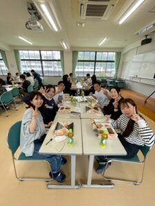 歓迎会は1~3年生、教員まで全員参加のレクリエーションとランチ。