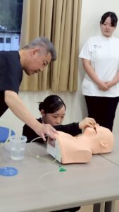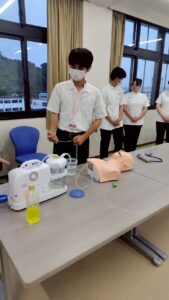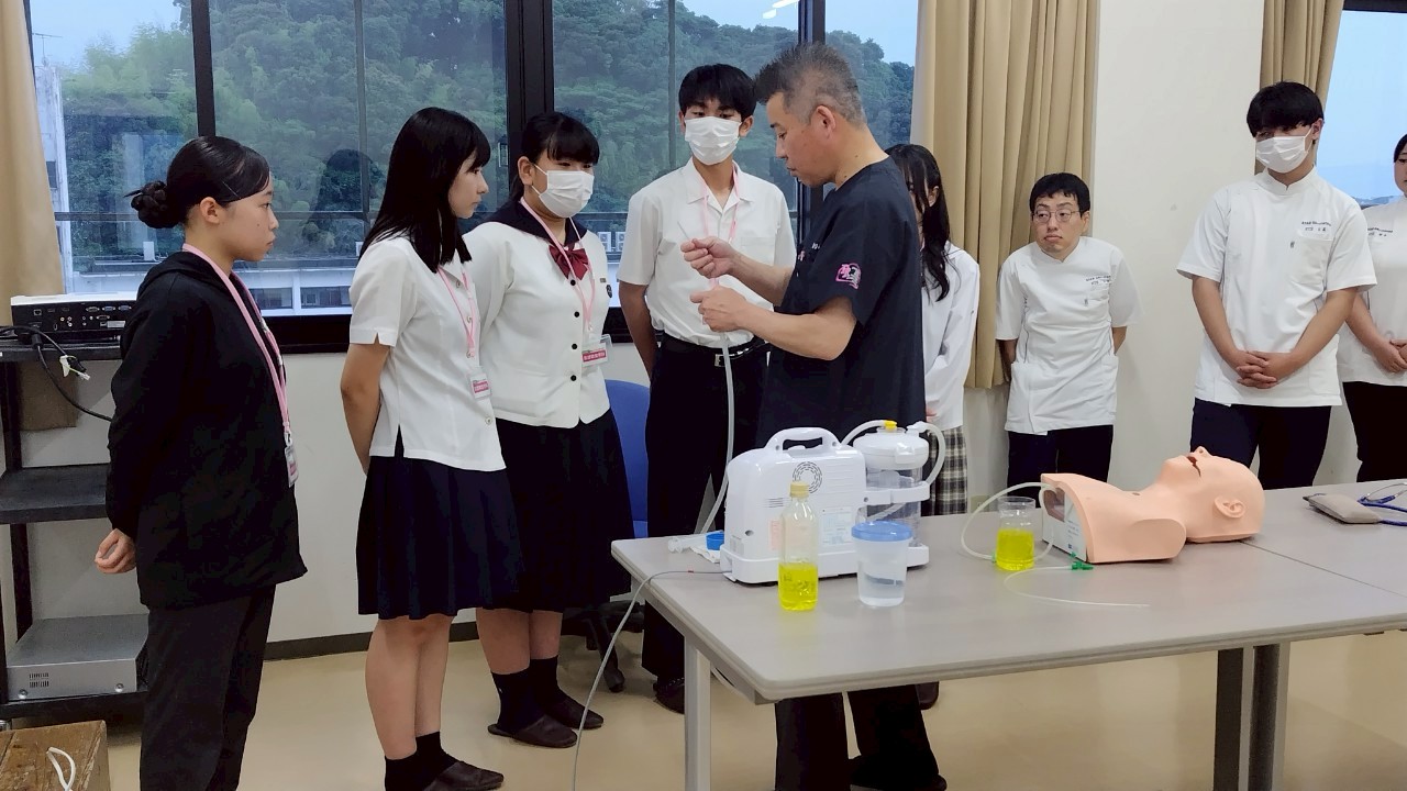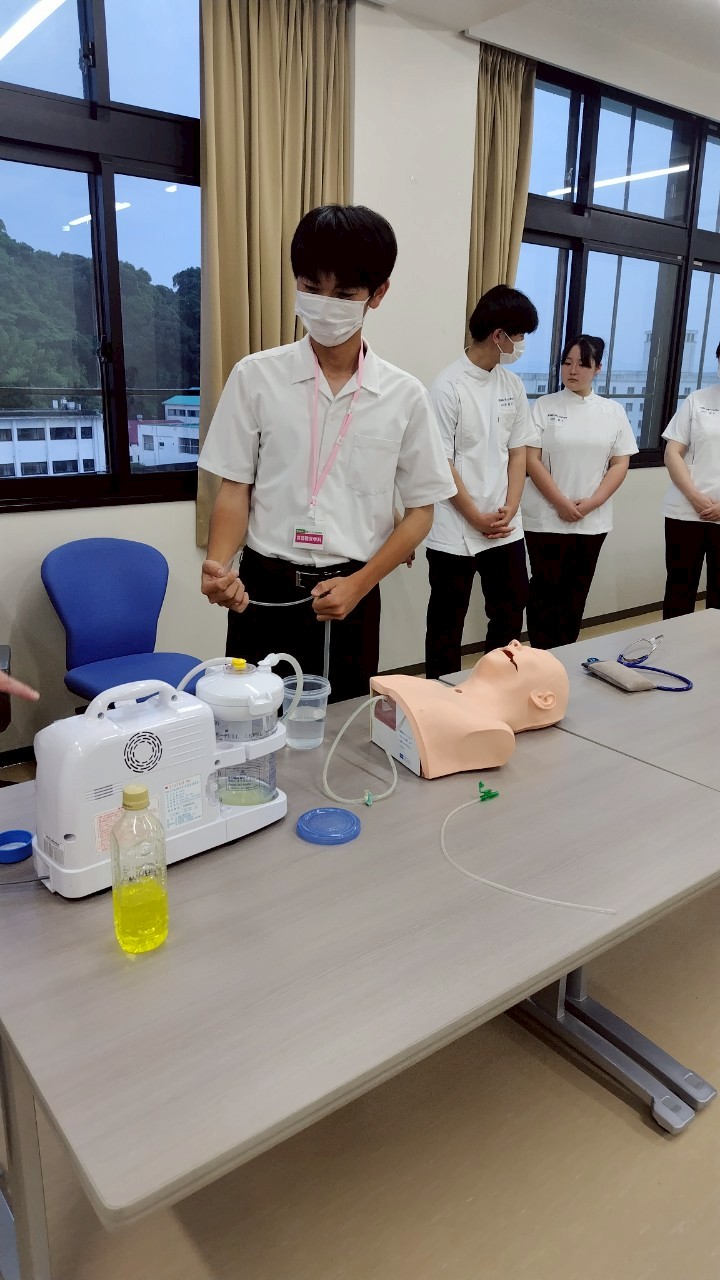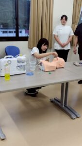 飲み込みについての体験では、吸引体験や頸部聴診をしました。