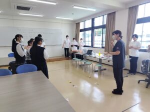 次に、教員による学科説明後、体験へと