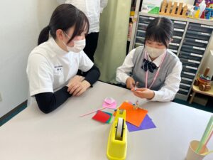 好きな色紙で、在校生と一緒に楽しく
