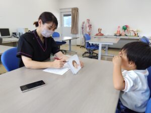👆言語聴覚士の小児臨床風景です(ことばの検査をしています☺)