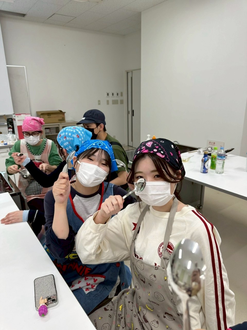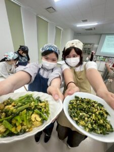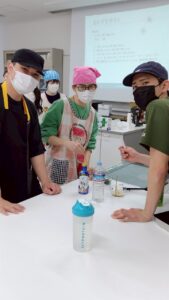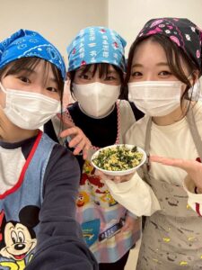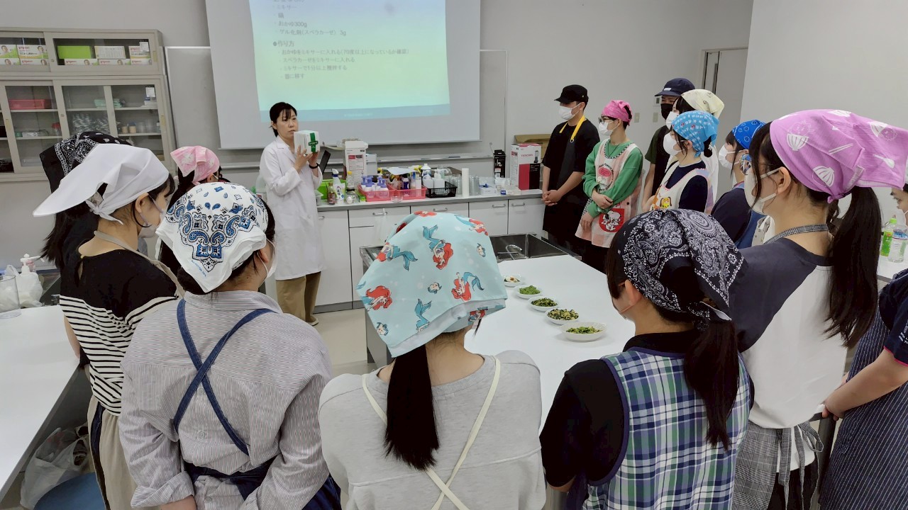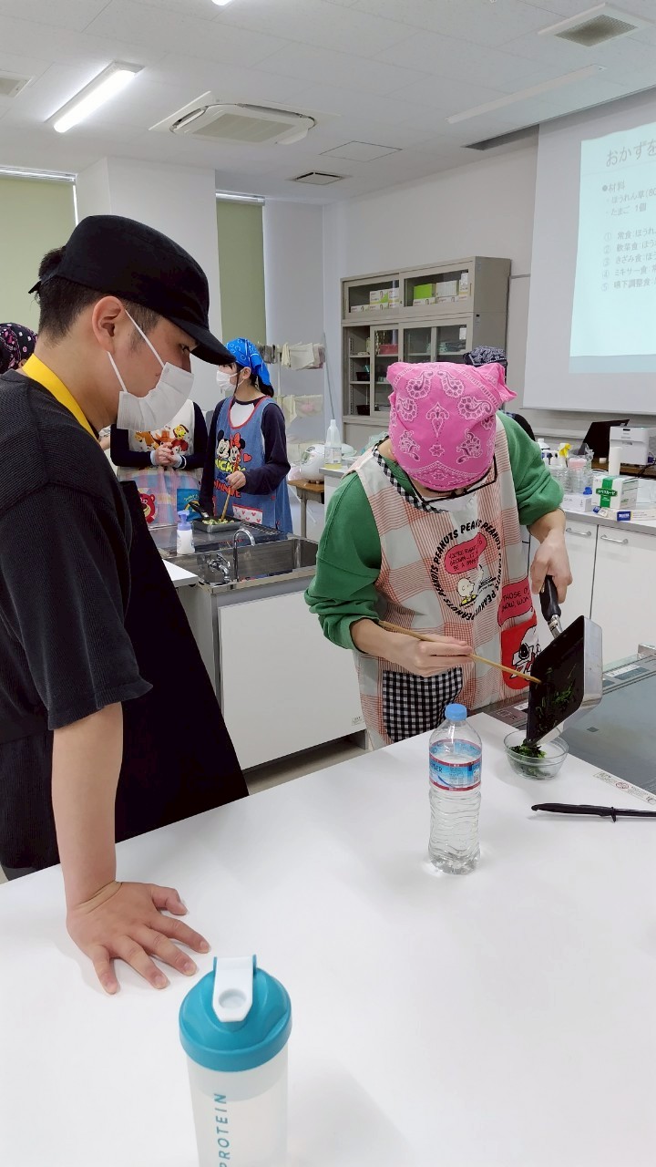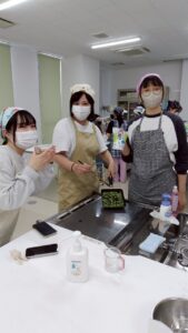 栄養学を教えて下さるのは、第一工科大学の森園先生です。第一弾は、嚥下調整食とお粥ゼリーの調理・試食でした。