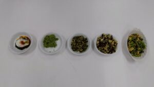 それぞれ、常食やきざみ、みじん、ミキサーなど5段階に調理しました。