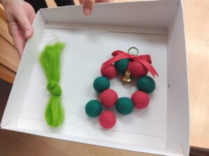 下の写真は、バザーで売る作品を制作中でした🎄