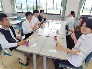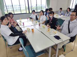 軽食を食べながら、先輩や教員と