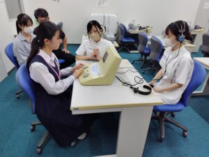 オージオメーターという聴力を測る機会を用いて、純音聴力検査を行いました。