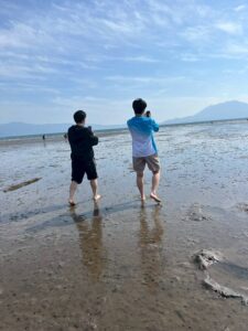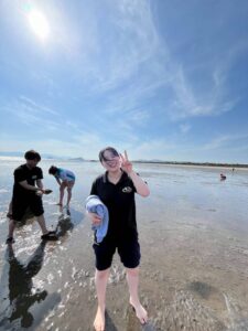 ボールを借りてバレーボールをしたり、海を見に行ったり、先輩・後輩で学校生活について質問したりなど交流しました