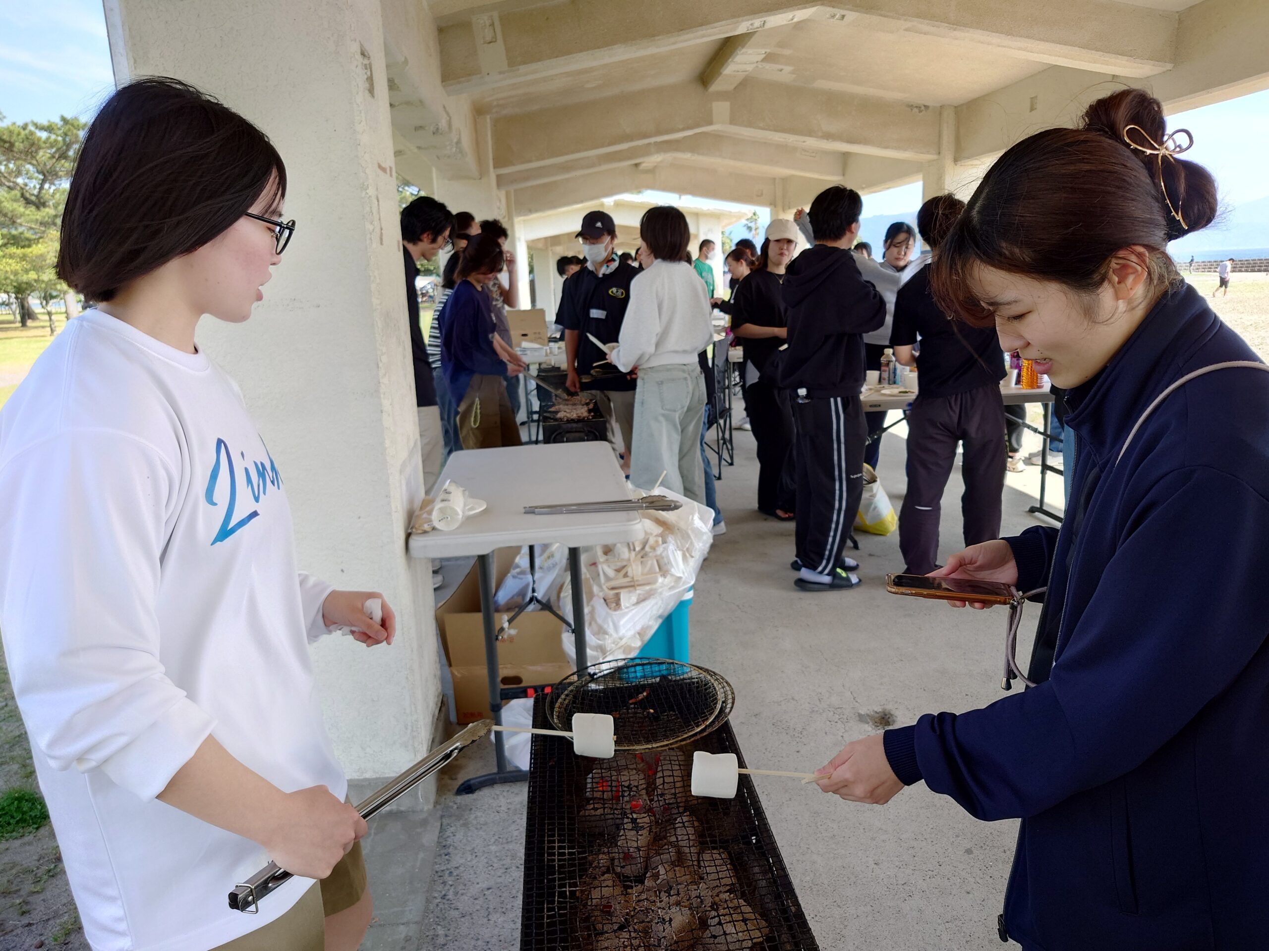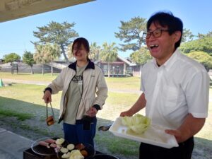 時には突風に悩まされながらも、協力してバーベキューを楽しんでいました😊