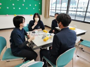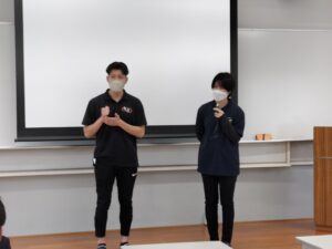 スポーツトレーナーについての、それぞれの資格での関わり方や学校で経験した実習やボランティアについて学生目線でも話しました
