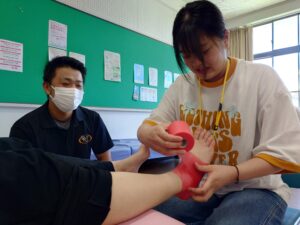テーピングの授業を柔道整復学科の先生方よる特別講義を実施!