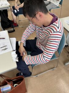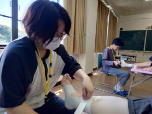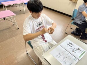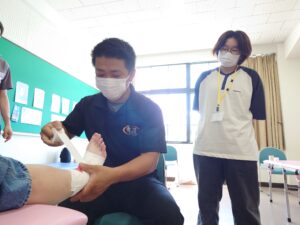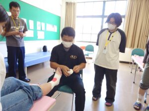 柔道整復学科 三宅先生によるホワイトテーピングの講義