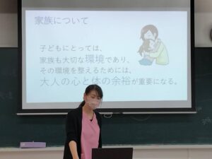 子供の特徴や家族との関わりの重要性について講義