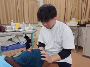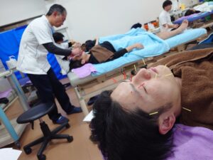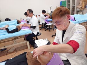 ベーシックコースの鍼施術を習得中