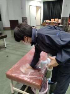 学生の受付や誘導、消毒と絶え間なく互いによく声を掛け合いながらスムーズに行っていました。