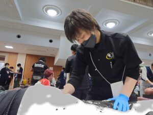 鍼灸マッサージのボランティア活動を行っており、本校はりきゅう学科の学生も選手の受付や誘導をお手伝いしました。