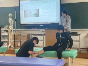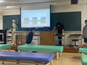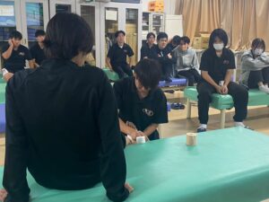 1年生では、スポーツトレーナーに必要な知識・技術の習得を目指し日々頑張っています。