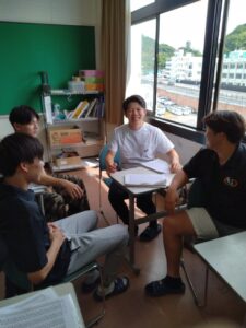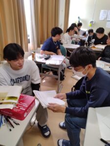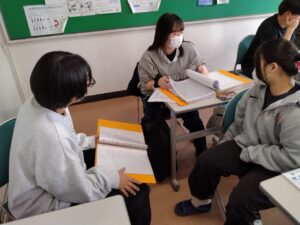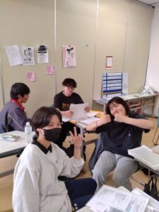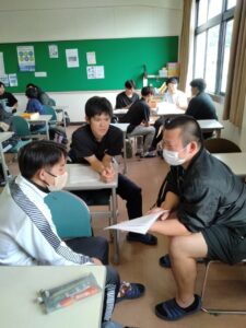 自分の悩みなどを2年生の上級生に相談したり、クラスメイトと共有する勉強会!