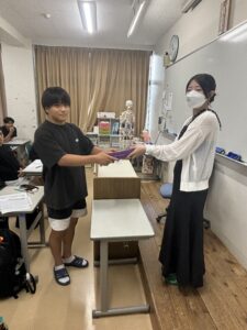 先月、昨年度の卒業生 「小出水先生」が近況報告も兼ねて、学校へ遊びに来てくれました。
