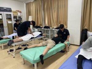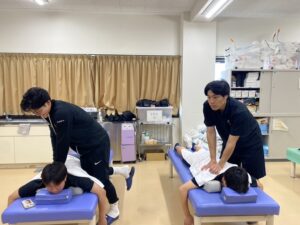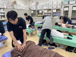 今回は、1年生の「柔道整復実技Ⅰ」風景です。