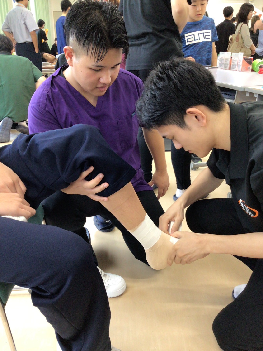 〈ストレッチ体験〉〈テーピング体験〉〈電気治療体験〉 などを柔道整復学科は行いました!
