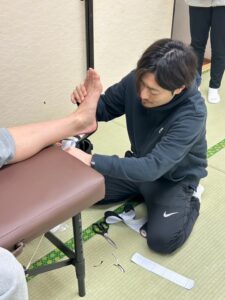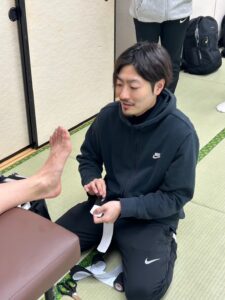 学生も実際の施術とテーピングのスピードと圧倒されていました。