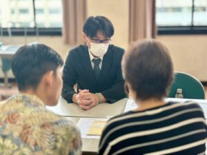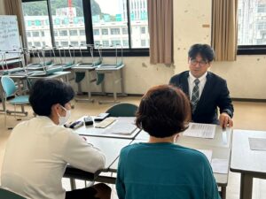 学生、保護者、教員の3者面談を行うことで、今後の学習面や就職活動の情報共有を図り、