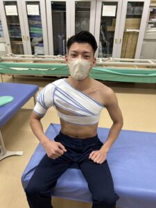 ■肩関節の固定法も同じく4役で実施して、
