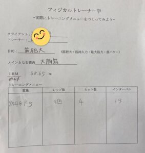 ★1年生 フィジカルトレーナー学~その③~ トレーニングメニューを作る👍