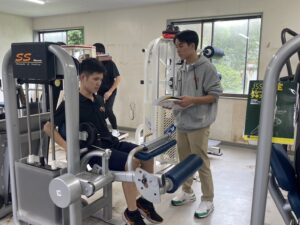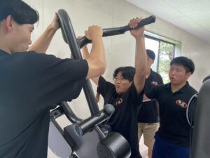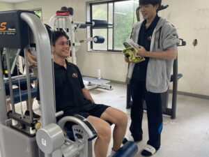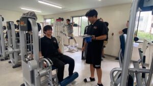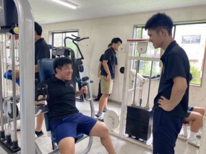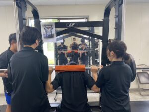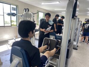 今回は、トレーニング法の1つである「マシーントレーニング」の実践も行いました。