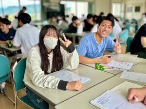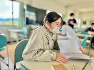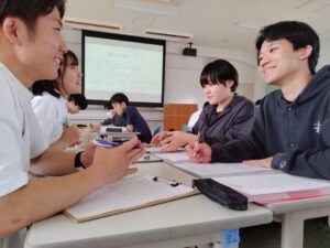 3年生のアドバイスをもらいながら、グループワークを通じて学生一人一人に考えてもらいました。