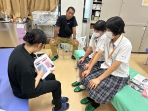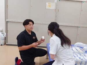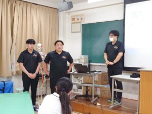 柔道整復学科のオープンキャンパスでは、在校生も参加した職業体験や学科説明を行っております。