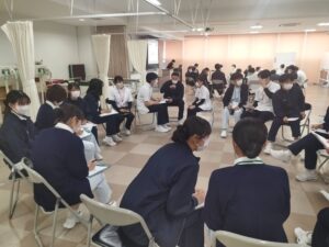 本校では、理学療法学科、作業療法学科、言語聴覚学科の学生と、県内の看護専門学校の学生が合同で多職種連携授業を実施しています。