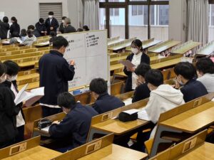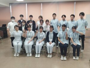 本校では、理学療法学科、作業療法学科、言語聴覚学科の学生と、県内の看護専門学校の学生が合同で多職種連携授業を実施しています。