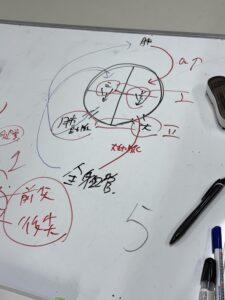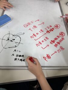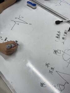 ホワイトボードに図やキーワードを書いてます❣