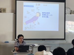 専任教員の高江先生より『基本動作とセルフケア① 起居動作』について学びました。