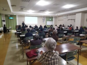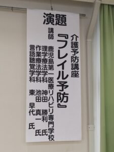 さて話は変わりますが、本校は介護予防講座を実施しております。昨日(3/2)は霧島市横川地区(丸岡会館)で介護予防講座「フレイル予防」という講座テーマで、理学療法士・作業療法士・言語聴覚士の3職種に依頼があり実施してきました。
