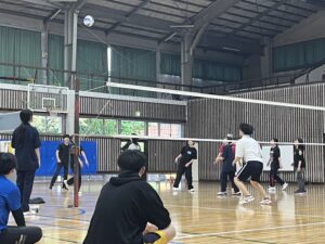 ◆体育館を借りて,1~2年生合同+作業療法学科教員でレクリエーション(スポーツ)を行いました!