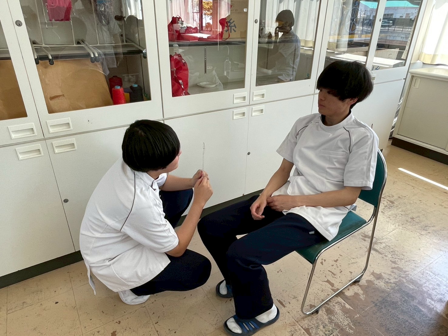 ▼試験前.学生どうしで練習に励みます.