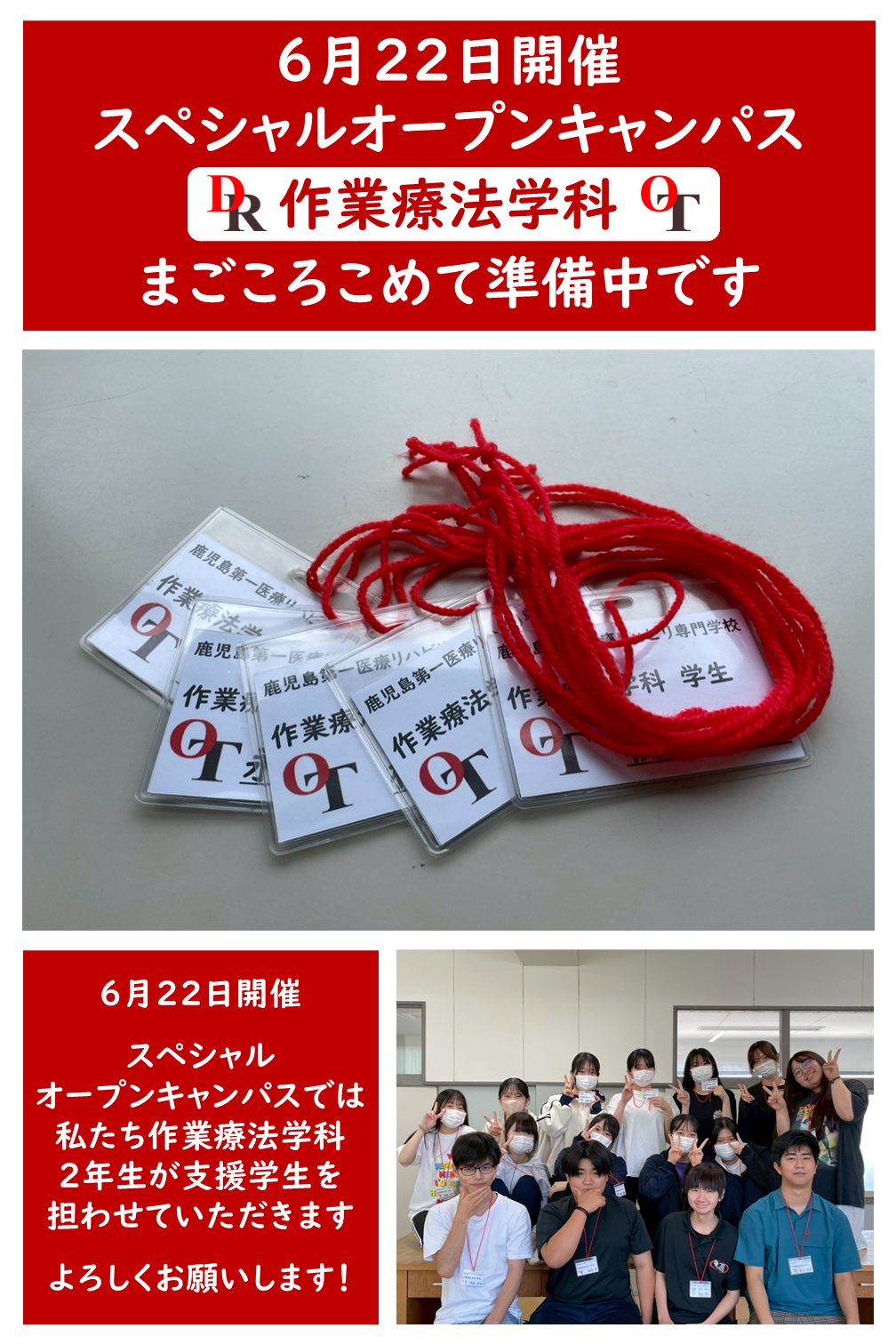 開催を前に 作業療法学科 から少しだけお知らせをさせていただきます.