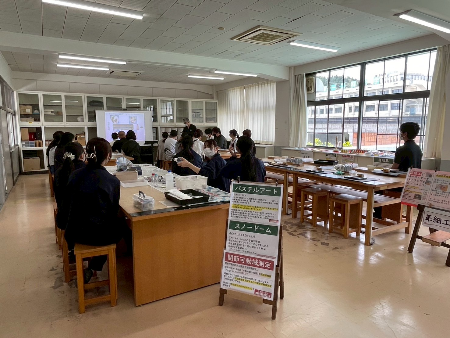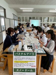 ▲「もの作り」「あそび」の要素を活かすことを目的に,パステルアート,スノードーム,革細工など様々なアクティビティを行いました.