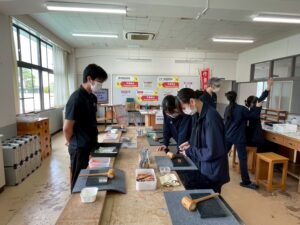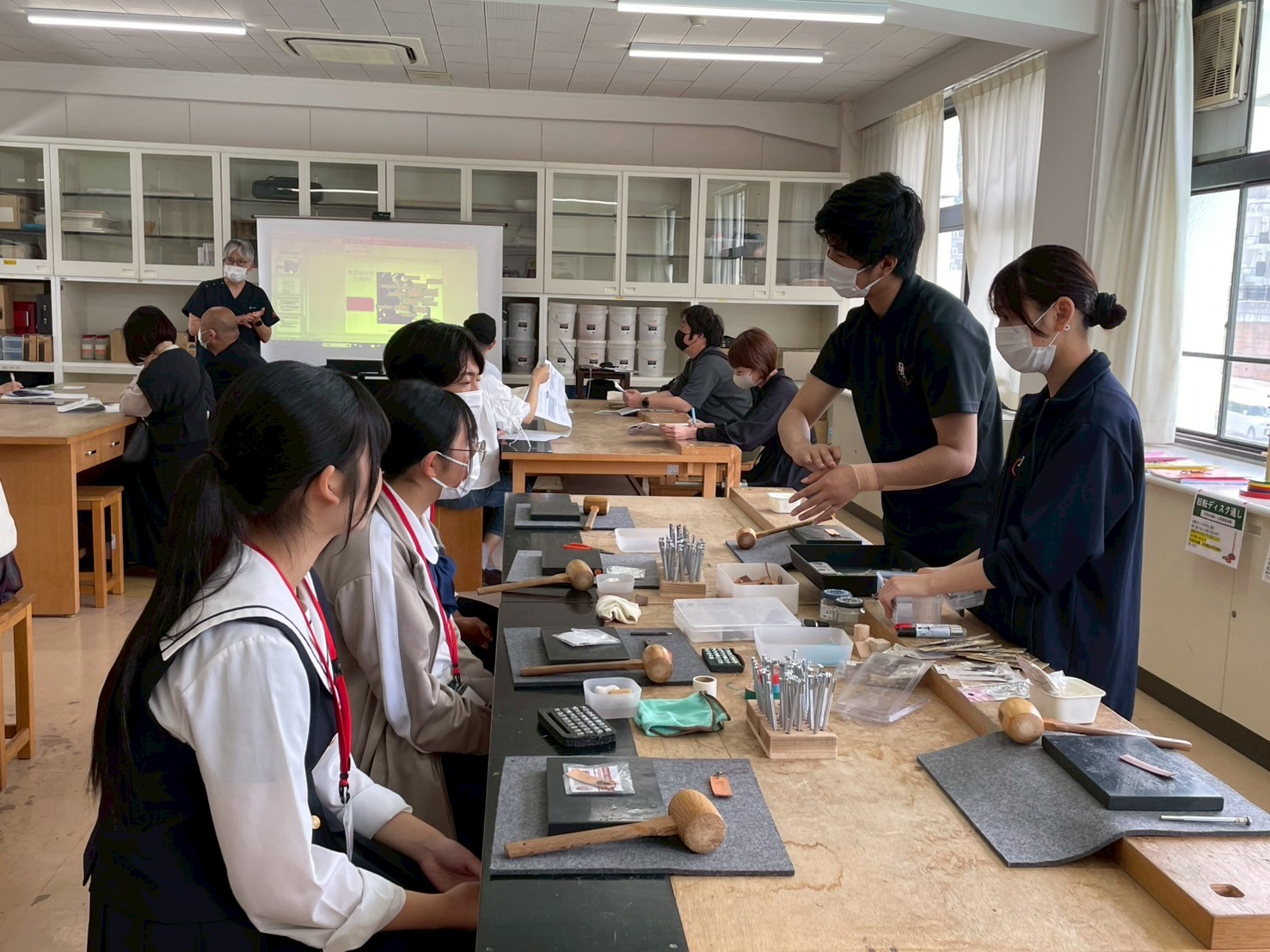 ▲▼今回は木工金工室を会場にしました.OC支援学生のOT2年生の皆さんです.開始前の準備です.