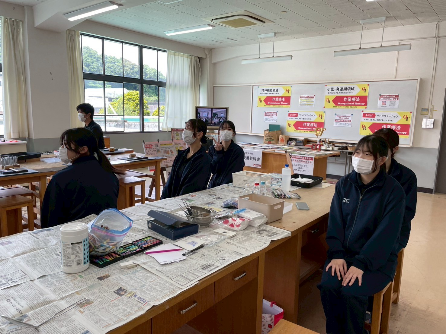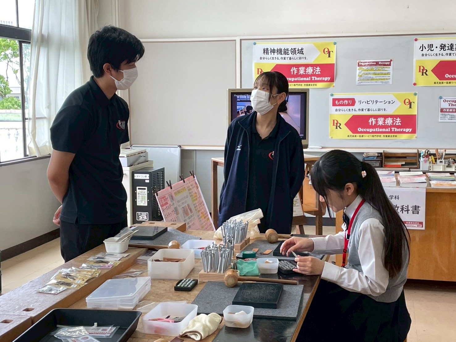 ◢ そのあと,生徒さんは作業療法体験を,保護者の方々は質疑応答を行いました.