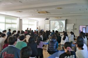 いざ、医療的ケア児さんが教室に入ってくると、学生の目は驚きと真剣なまなざしで講演会がスタート。