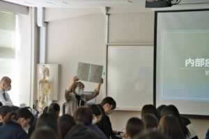 保護者の方々の熱い思い、生まれてから今まで家族がどのように過ごしてきたか、日頃の日常生活を写真や動画にて詳しく説明頂いたり、手作りの資料を元にお話しいただけ、学生は普段授業では見せないような真剣な表情で講演をきいていました。