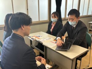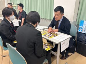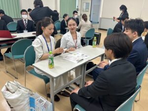 就職説明会では、各企業の代表・人事担当者様から直接「企業の特徴・魅力・福利厚生」などについて説明して頂き、就職を控える学生の参考にして頂くために実施しております。