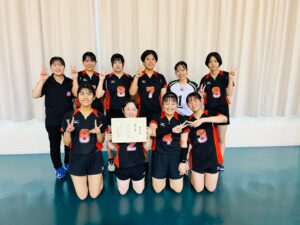 今回、男女ともに九州大会出場という素晴らしい成績を修めてくれました。勉強と練習の両立は大変で、身体もいろいろな所が悲鳴を上げる中、この九州大会では惜しくも三位という結果でしたが、このチームで楽しくバレーボールができたことが何より良かったと感じています。2年生はお疲れ様でした。1年生はまた来年頑張りましょう!!٩( ”ω” )و