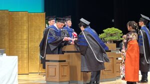 晴天に恵まれ、厳かな雰囲気の中、卒業式を迎える学生のその姿は、とても凛々しく自信に満ちたその笑顔に、とても頼もしさを感じました。
