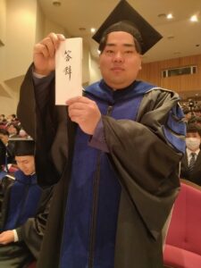 〇答辞 前学友会長 柔道整復学科 3年 岩川 貴文(国分中央高校出身)